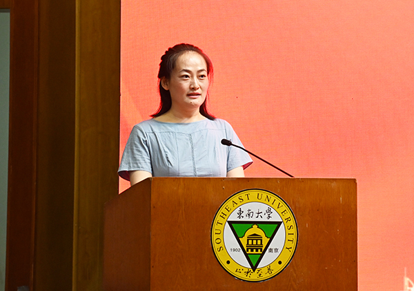 学校教师授课竞赛一等奖获得者——机械与电气工程学院教师段国燕代表教职工发言,她结合个人从教经历向全校教职工分享自身感悟,提出未来期许:教师身上肩负的是使命也是责任,必须坚守三尺讲台,坚守潜心铸魂育人不忘初心;在教学实践中,要不断探索与创新,不断提升个人的育人能力;在教育的道路上,教师自身的成长至关重要,要坚持终身学习,追求自我超越。在发言中,她还与全校教师共勉,要以“捧着一颗心来,不带半根草去”的无私奉献精神为指引,以“兼容并包”为教育理念,以“科学与艺术结合”的教育思想为启发,不断进行探索和实践,为强国建设培养具有核心竞争力的高素质应用型人才。