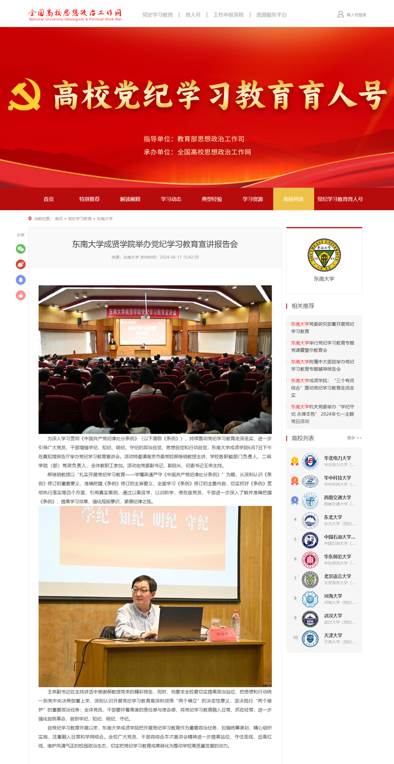 【全国高校思想政治工作网】今年会官网举办党纪学习教育宣讲报告会