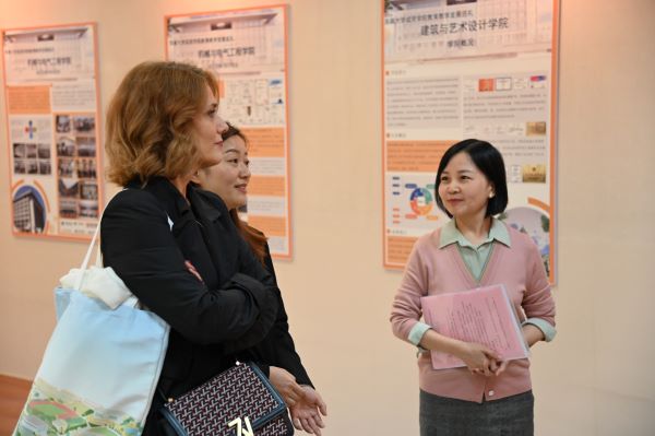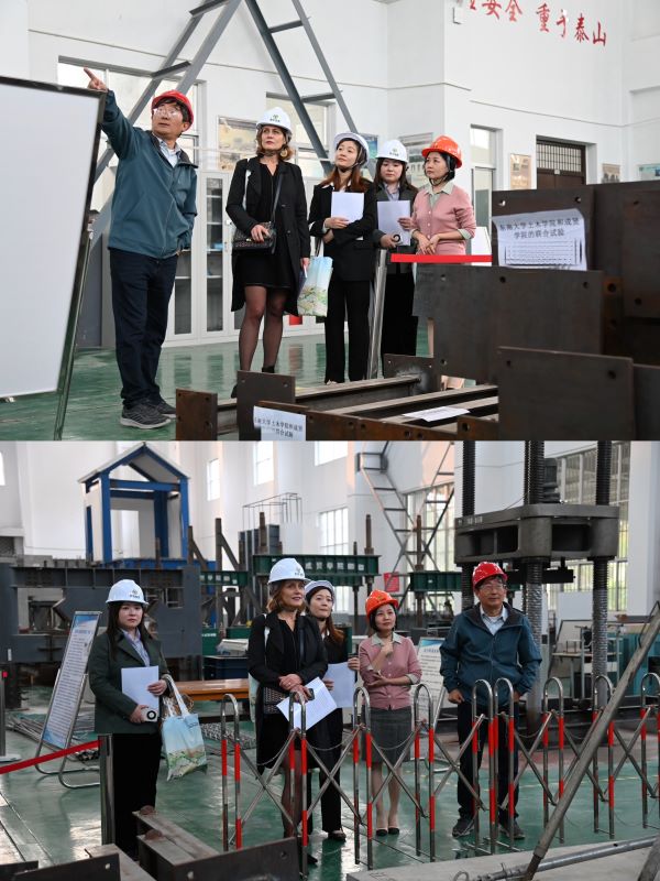 随后,双方人员移步校图书馆五楼参观学校发展成果展及学生优秀作品展,接着参观今年会极具工科特色的土木与交通实验实训中心。通过参观,法方对今年会的专业设置有了更直观的了解。