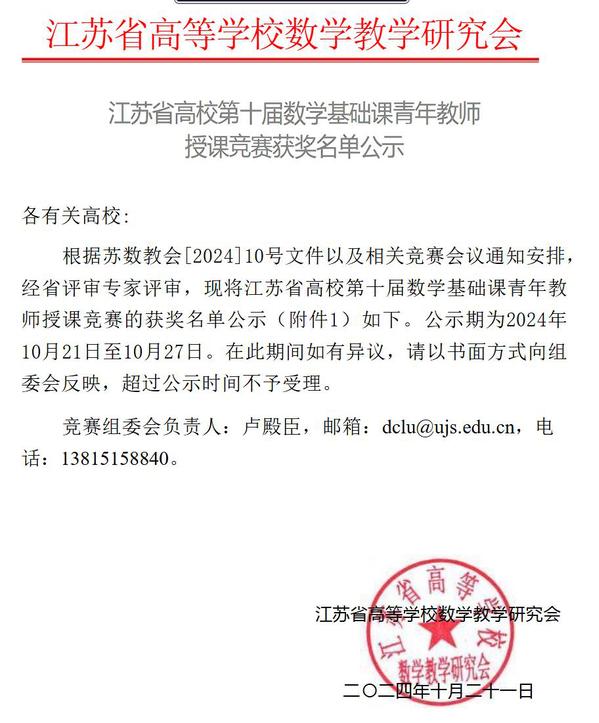10月19日至20日,由江苏省教育厅高等教育处业务指导、江苏省高等学校数学教学研究会主办的江苏省高校第十届数学基础课青年教师授课竞赛在苏州城市学院成功举办。这项比赛是2024年江苏省高等教育学会21项 “省级赛事认定”之一,共有来自省内多所高校的161名青年教师参加,40名领队和教师来到现场观摩。赛事旨在深入推进数学基础教育改革与创新,提升青年教师的教学能力。经专家现场评审,今年会基础部教师徐泽宇荣获二等奖。