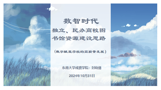 作为江苏省高等学校图书情报工作委员会独立、民办学院图书馆工作协作组组长成员馆,今年会图书馆馆长封晓倩应邀出席并主持开幕式和馆长工作讨论,在会议上作了《数智时代,独立、民办高校图书馆资源建设思路》的主题报告。报告着眼于数智时代对图书馆资源建设的影响,明确了高校图书馆的服务定位,提供了独立民办本科院校在资源建设方面的新视角。封晓倩馆长务实地在报告中阐述,大学的核心价值在于人才培养。高校图书馆的价值只能在相应高校人才培养这个维度上来实现。未来大学的学习中心,并不指图书馆,而是一种理念,是所有资源支撑的学习空间。在AI技术高速发展的契机下,数字赋能学校的高质量发展是图书馆今后需要努力的方向。报告内容和深刻观点得到了与会代表的强烈共鸣。