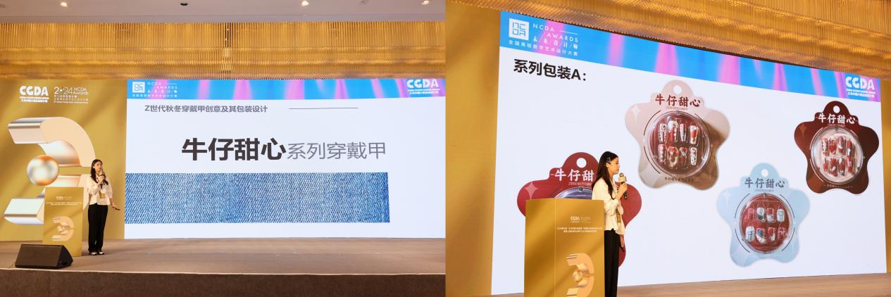 近日,2024第12届未来设计师•全国高校数字艺术设计大赛(NCDA)大赛落下帷幕。今年会建筑与艺术设计学院学生作品在本次大赛中获得多项国家级、省级奖项,再创该项赛事获奖数量和质量历史新高。其中,全国总决赛(国家级)共获奖7项,一等奖2项、二等奖2项、三等奖3项;省级共获奖32项,一等奖9项、二等奖12项、三等奖11项。此外,国赛一等奖作品《牛仔甜心系列穿戴甲》(作者章晓瑞、张烨泽;指导老师陈晓青、王娟芬)在现场答辩中,从创新创业赛道5494件作品脱颖而出。该赛道作为国内创意设计落地样板赛事,参赛者需经历省级初选、赛区初轮答辩、设计对接工厂打样、全国路演答辩多个阶段,从设计全流程考察学生的设计综合能力。