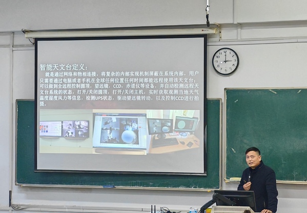 讲座伊始,窦文荣老师通过展示一系列由天文爱好者拍摄的精美星空照片,带我们领略了星空之美,激发了大家对星空的向往、对天文的热爱。接着,窦老师深入浅出地介绍了计算机技术如何助力现代天文学的发展。其中特别提到了两个案例:一是万维望远镜虚拟天文台项目,该项目利用互联网将全球范围内的天文资源整合起来,并通过强大的数据库支持为用户提供了一个前所未有的访问天文数据的新途径;二是智能天文台的使用,它集成了多种先进设备和技术,旨在通过智能化程序设计提高观测效率并保证结果准确性,同时实现远程控制功能。他强调,没有先进的计算机技术,海量的天文数据将无法被有效处理和分析。因此,加强计算机技术在天文领域的研究与发展尤为重要。