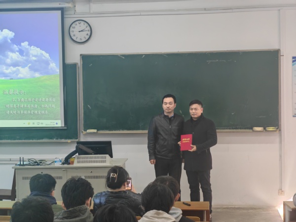 在正式开讲前,电子与计算机工程学院党总支副书记羊栋向窦文荣老师颁发了“天文爱好者协会校外指导老师”聘书。
