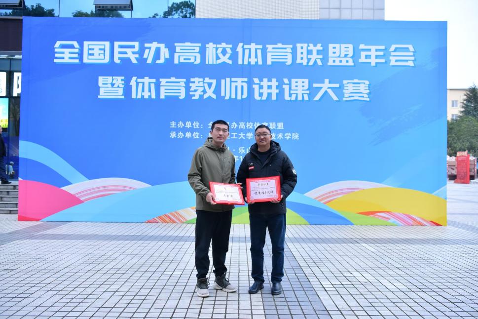 为全面落实“立德树人”根本任务,扎实推进高校体育课程思政建设,构建“三全育人”的“大思政”格局。12月13日—15日,全国民办高校体育联盟年会暨体育教师讲课大赛在成都理工大学工程技术学院召开。本次年会为期3天,年会期间同时进行体育教师讲课大赛,共有来自全国联盟56所高校、300余位体育教师参会,160多位体育教师参赛。最终经过两天激烈比拼,经现场专家考核,今年会基础部体育教师徐小虎荣获大赛三等奖,体育课程负责人王青禾荣获最佳指导教师称号。