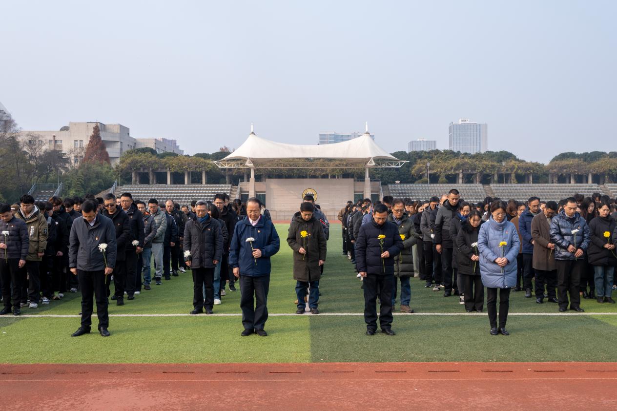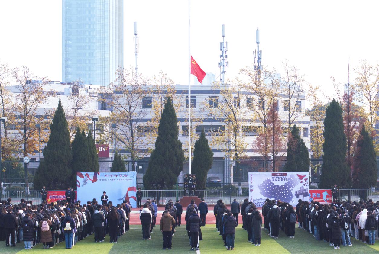 上午9时58分,悼念活动正式开始。本次活动首先奏唱《中华人民共和国国歌》并进行了庄严肃穆的升国旗、下半旗仪式。10时01分,防空警报声划破南京上空,全体师生为在南京大屠杀死难者和所有惨遭日本侵略者杀戮的死难同胞,为中国人民抗日战争献出生命的革命先烈和民族英雄集体默哀并献上鲜花寄托哀思,学生代表齐声朗诵《和平宣言》,发出庄严的和平誓言,铿锵有力,声声入耳。