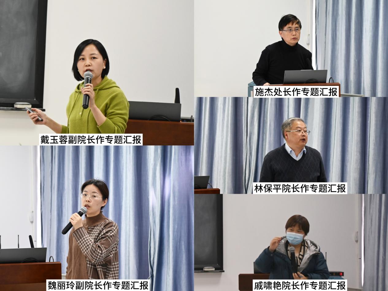 制药与化学工程学院院长林保平介绍了学科建设现状、拟申报硕士学位授予点的培育方向,对照申报条件分析了差距、努力目标和改善举措;经济管理学院院长戚啸艳报告了专业建设工作的研讨和分析,并据此提出了总体思路、重点工作和主要举措。