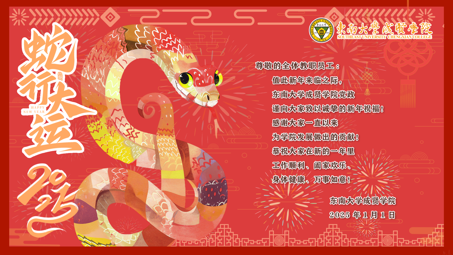 致全体教职工的新年贺卡