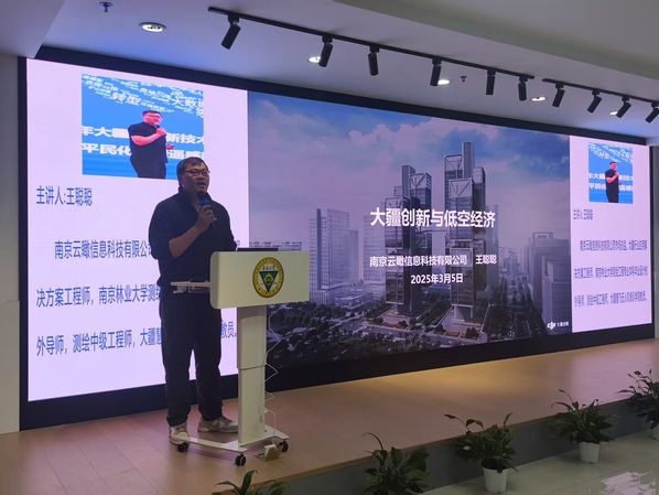 王聪聪总监在无人机行业应用解决方案方面有着丰富的经验,曾担任南京林业大学测绘工程专业本科毕业设计校外导师,并在大疆慧飞无人机培训学院任教。他结合自身工作经验,深入浅出地介绍了低空经济的相关概念和政策,并对无人机行业头部企业大疆创新的产品和相关解决方案进行了详细介绍。