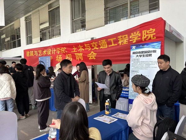 本次招聘会旨在搭建校企对接平台,精准服务毕业生就业需求,助力学生实现高质量就业。本次招聘会吸引了包括江苏都市交通规划设计研究院有限公司、南京市建筑设计研究院有限责任公司、江苏原力数字科技股份有限公司、南京逐鹿景观工程有限公司、南京恒广工程管理有限公司等20余家校企合作企业,其中7家校友企业参会,涵盖环境艺术、数字媒体、建筑设计、工程管理、交通规划等多个领域,提供就业岗位近300个,精准匹配两院毕业生专业方向。