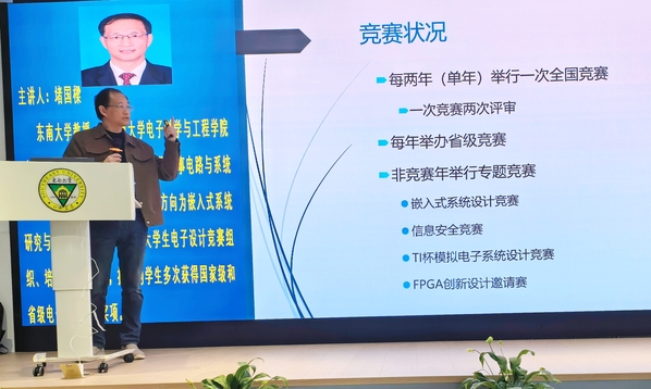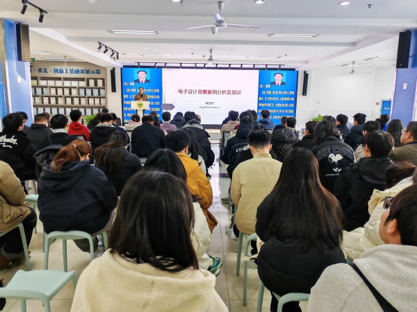 在讲座中,堵教授首先详细介绍了电子设计竞赛的背景和发展现状,强调了竞赛在培养学生创新能力和实践能力方面的重要作用。随后,他通过多个典型案例,深入分析了竞赛中的关键技术问题和解决方案,帮助学生们更好地理解竞赛的难点和要点。最后,堵教授结合自身多年的指导经验,提出了针对竞赛培训的宝贵建议,强调了实践能力、团队合作和创新思维在竞赛中的重要性。