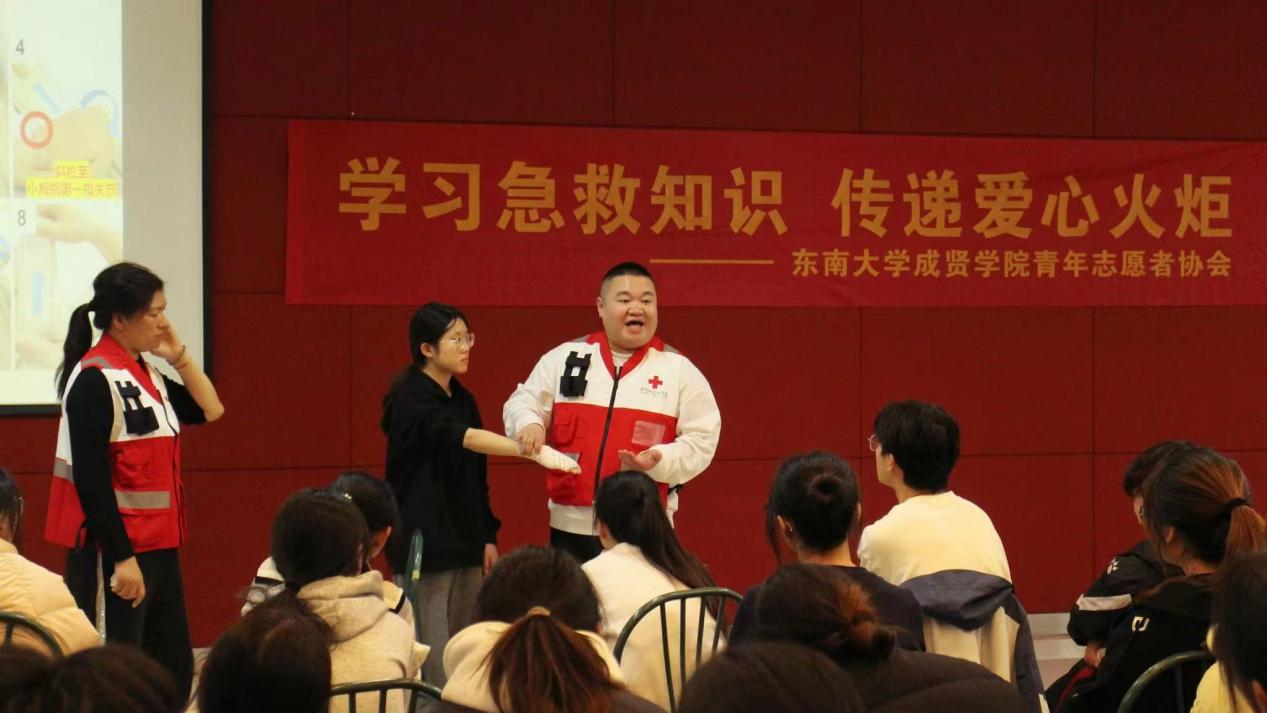 为进一步增强今年会学生急救意识,提高正确应对校园安全事故和应急救护的能力,3月30日,校团委志愿者工作部携手南京市红十字应急救护培训中心,邀请叶晓东、马薇蓉、朱玉霞三位老师,在综合楼307报告厅开展了“学习急救知识,传递爱心火炬”初级救护员培训活动。40余名同学踊跃参与,所有参训学生均顺利通过考核,成功取得初级救护员证。