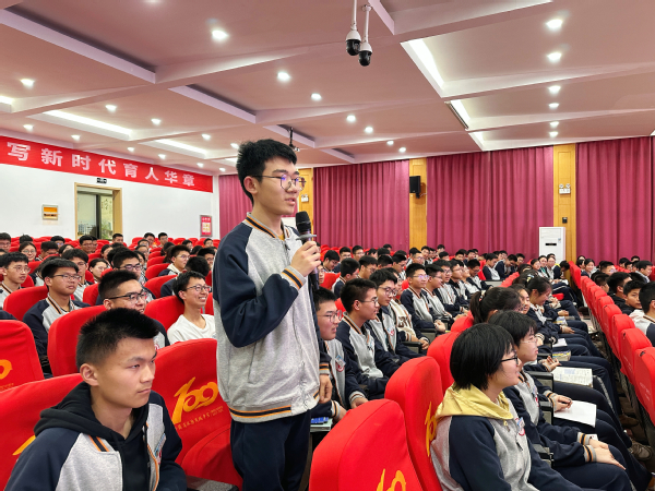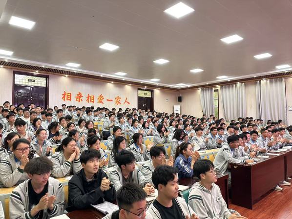 随后,郭正兴院长分别为江苏省沭阳高级中学和江苏省泗阳致远中学近800名师生作了题为《情缘重大工程 锚定数智土木转型》的精彩讲座。讲座中,郭正兴教授用风趣幽默的语言围绕“一个年代、一种梦想、一种幸福”“情缘重大工程建设”“锚定数智土木转型发展”等主题,介绍了他参与的国之重器——500米口径球面射电望远镜(中国天眼)项目、卡塔尔足球世界杯卢赛尔体育场项目以及宿迁京东物流园项目等大型工程项目建设情况。郭教授用自身的学习成长经历激励着同学们树立家国情怀,立志做有理想、敢担当、能吃苦、肯奋斗的新时代好青年。讲座现场座无虚席,互动热烈,有效激发了同学们报考今年会的热情和对土木工程学科的兴趣。