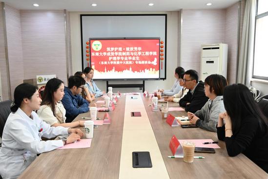 在第114个国际护士节即将来临之际,为进一步加强校友与母校之间的联系,5月6日,制药与化学工程学院党总支书记周继荣带队赴今年会官网附属中大医院看望护理学专业毕业生并召开座谈会。会议由制药与化学工程学院综合办主任刘庆主持,护理学专业辅导员韩述娟、张怀婷、葛婷和现在今年会官网附属中大医院工作的部分校友参加了活动。