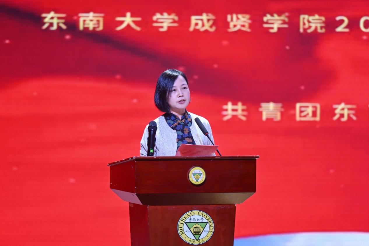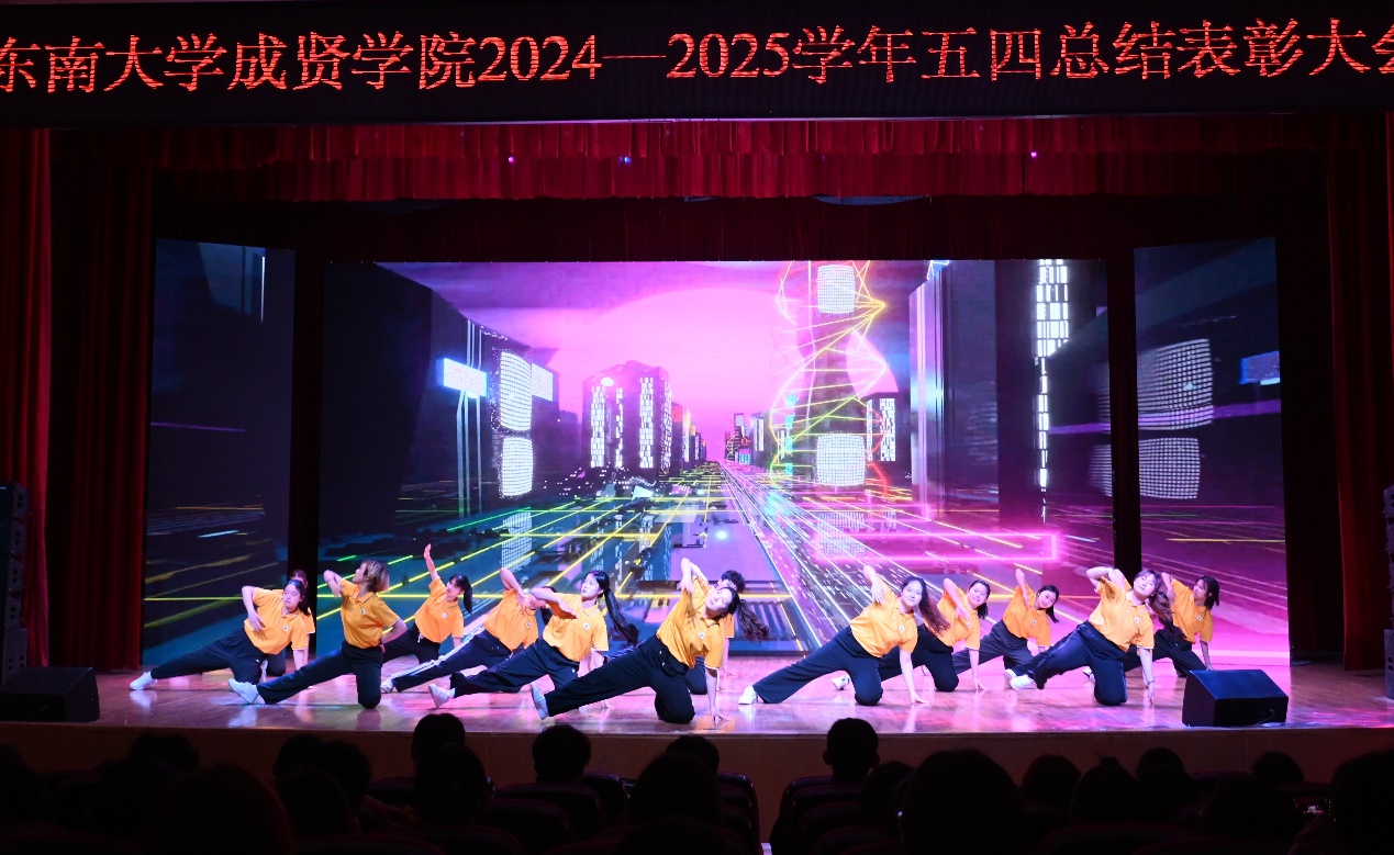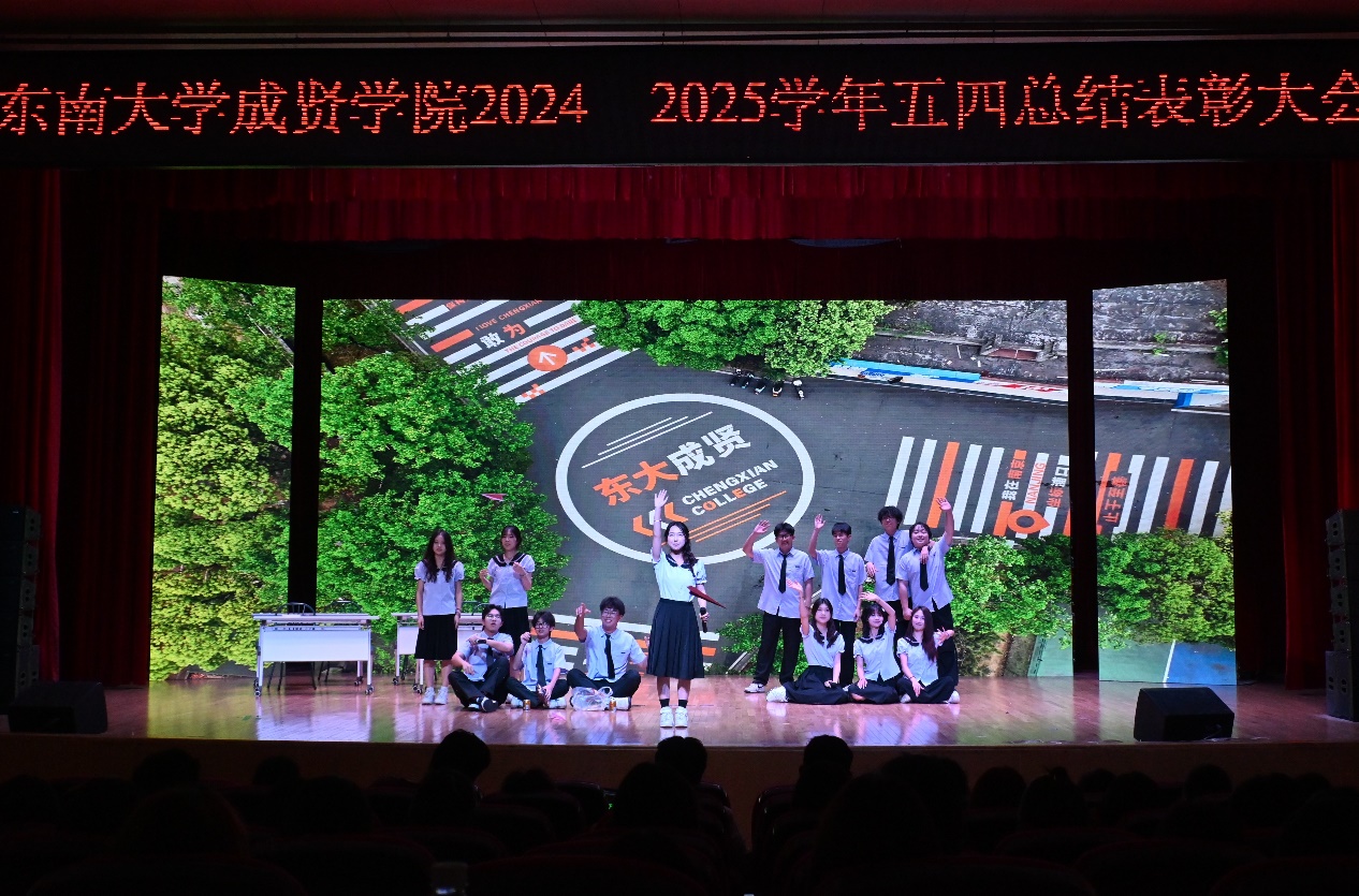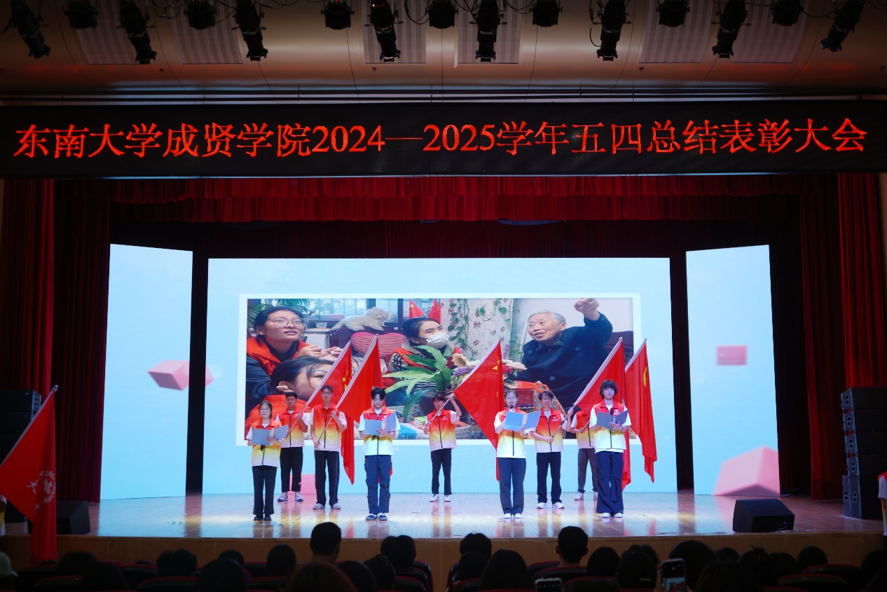 开场舞《以少年之名》和视频《青年青春奋斗》以鲜活的镜头勾勒出成贤学子的昂扬姿态。大会在师生齐唱《中国共产主义青年团团歌》的澎湃旋律中拉开帷幕。戴玉蓉副院长向全校一万多名青年师生致以节日的问候,向受到表彰的先进集体和个人表示热烈的祝贺,她希望成贤青年,一是要坚定理想信念,筑牢信仰之基;二是要勤奋学习知识,练就过硬本领;三是要积极投身实践,践行社会责任,并鼓励全体青年学子以五四精神为指引,坚定理想信念,勇担发展重任,成才不负青云志,报国常怀赤子心。