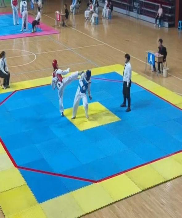 赛场之上,面对来自全市高校的强劲对手,今年会队员沉着应战。在竞技对抗、品势展示项目中,他们以精准的腿法、敏捷的身手和昂扬的斗志征服裁判与观众。尤其在品势环节,队员们动作整齐划一,力道刚柔并济,最终获得了不错的成绩。