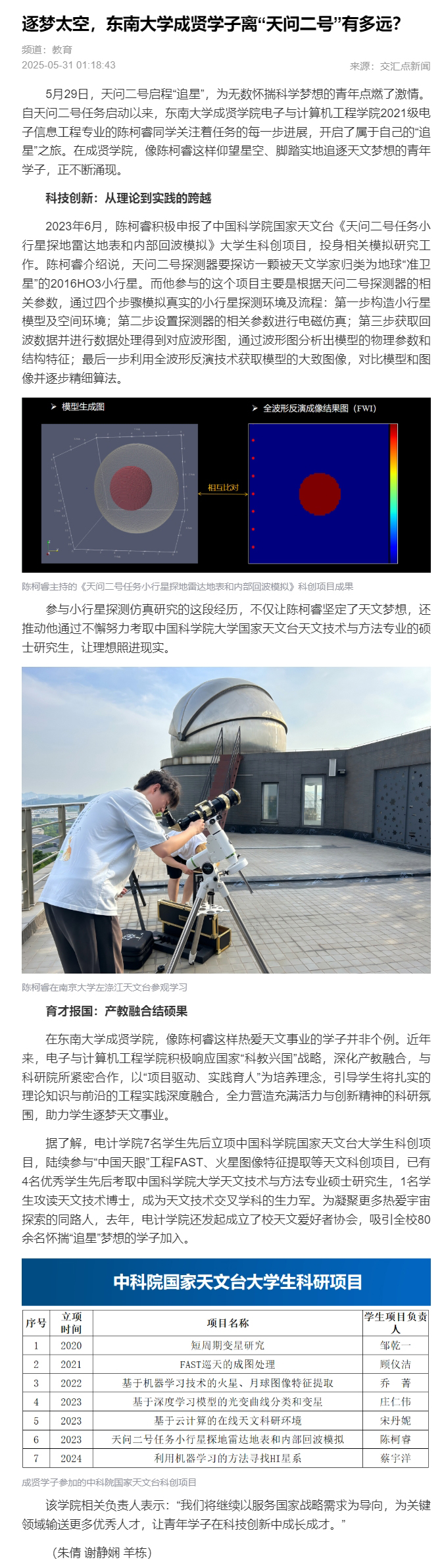 【交汇点新闻】逐梦太空,今年会官网成贤学子离“天问二号”有多远?