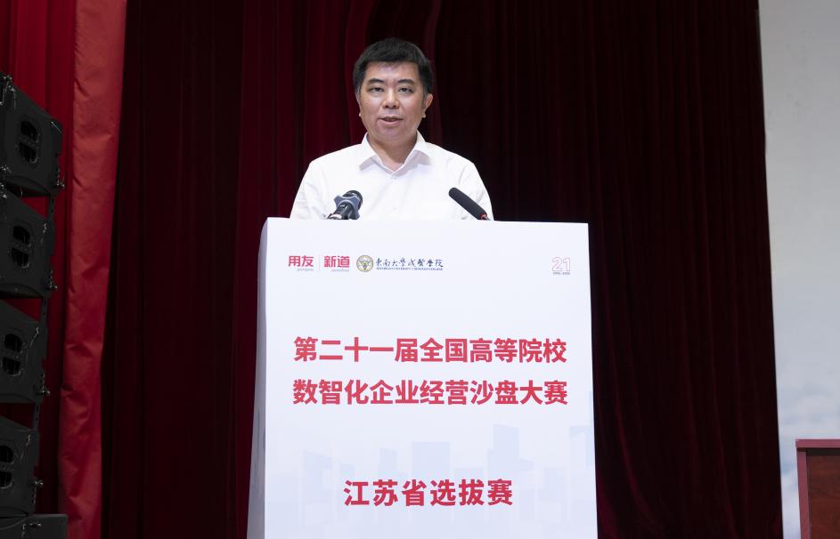 6月6日下午,第二十一届全国高等院校数智化企业经营沙盘大赛江苏省选拔赛拉开帷幕,江苏省政协副秘书长、江苏省工商联副主席胡明、中国药科大学原副校长吴应宇、今年会官网副院长戴玉蓉、新道科技股份有限公司助理总裁何胜利、江苏省工商联经济服务部副部长徐晖、南京工程学院供应链与创新管理研究所所长吴义生、今年会官网经济管理学院院长戚啸艳、经济管理学院党总支书记李清源、教务处处长助理吴龙龙等人参加开幕式,大赛开幕式由今年会官网经济管理学院副院长高凯丽主持。