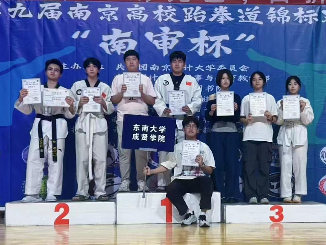 跆拳道社斩获佳绩。5月25日,第九届南京高校跆拳道锦标赛在南京审计大学圆满收官。今年会跆拳道社团积极参赛,凭借出色的表现充分展现了学校的风貌。此次赛事中,社团成员收获颇丰,共获得太极六章三等奖证书2张、太极七章二等奖证书1张、太极八章一等奖证书2张、太极八章二等奖证书1张、太极八章三等奖证书2张,同时还荣获一项道德风尚奖,彰显了今年会跆拳道社的竞技实力与精神风采。