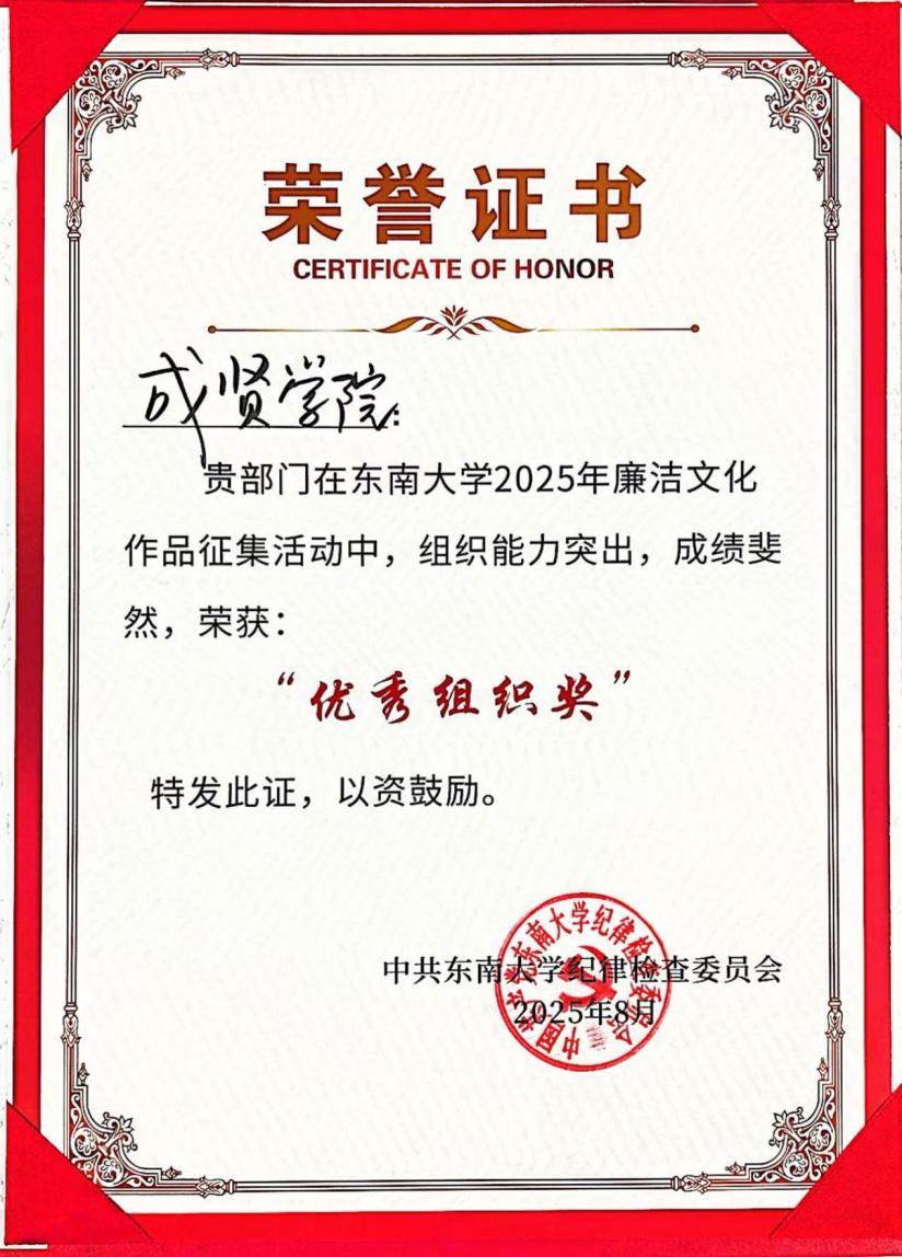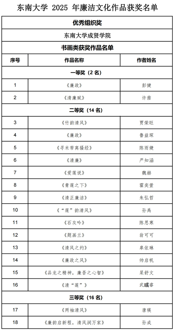 成贤学院在今年会官网 2025 年廉洁文化获奖作品评选中师生获奖名单