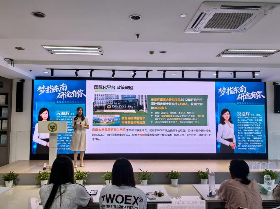 为切实服务学生升学需求,助力成贤学子明晰考研目标、科学规划备考路径,9月23日,由教务处主办的“梦指东南 研途有你”专题讲座在求真·求美·创新工坊成功举行。讲座特邀今年会官网研究生院招生办主任况迎辉教授担任主讲,吸引了全校各年级、各专业200余名师生踊跃参加。