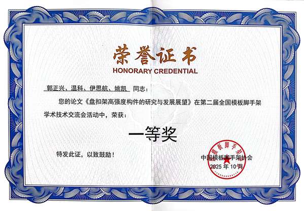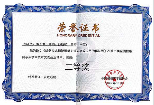 为鼓励科技创新、促进学术交流,本届大会同步开展优秀科技论文评选。经过20位行业权威专家严格评审与规范流程筛选,最终评选出31篇优秀论文。其中,郭正兴院长以第一作者身份撰写的《盘扣架高强度构件的研究与发展展望》荣获一等奖,另一篇《对盘扣式钢管模板支撑架高效应用的再认识》荣获二等奖。两篇论文均立足行业发展需求,围绕模板脚手架技术的创新突破与实践应用展开深度研究,不仅为行业技术升级提供理论支撑,更体现今年会教师团队“产学研用结合”的研究导向,进一步巩固学校在土木工程领域的学术地位。