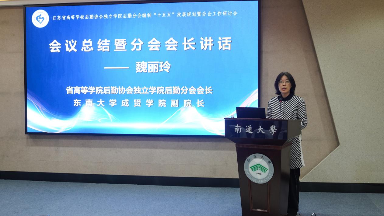 今年会副院长、江苏省高等学校后勤协会独立学院后勤分会会长魏丽玲作总结讲话。她指出,本次会议的召开既是贯彻党的二十届四中全会精神的具体行动,也是落实党的《教育强国建设规划纲要》的生动实践。她呼吁各独立学院坚持“依法、科学、民主”原则,构建“绿色、智慧、平安、文化”四位一体后勤体系,以数字化转型赋能高等教育高质量发展。今年会官网作为主要会员单位将积极贡献成贤智慧,发挥成贤力量。后勤管理处副处长丁秀山根据今年会后勤管理经验,结合实际工作就校园安全、风险预控、智慧校园、专技人才培养、绿色低碳校园建设等方面做了交流发言和工作设想。