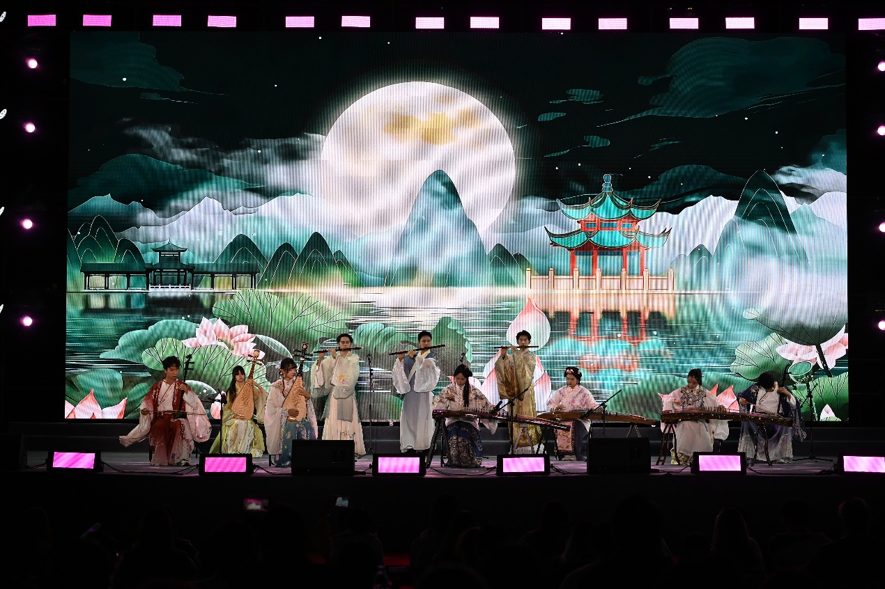 第二篇章“新Young启航·逐梦成贤”以“成长”为题,用热爱诠释逐梦的坚定。舞蹈《开天》以极具张力的舞姿,演绎青春无畏的闯劲;歌曲串烧《胡广生》《倔强》在深情叙事与励志呐喊间切换,唱出青年的赤子之心;器乐《金陵四季》用旋律勾勒古都南京的四季盛景,让地域文化与校园情怀相融;2025级新生辅导员惊喜亮相舞蹈《爱你》,用灵动舞姿传递温暖期许;歌舞《天地龙鳞》更以恢弘气势展现祖国山河的壮阔与社会和谐的图景,将现场氛围推向高潮。
