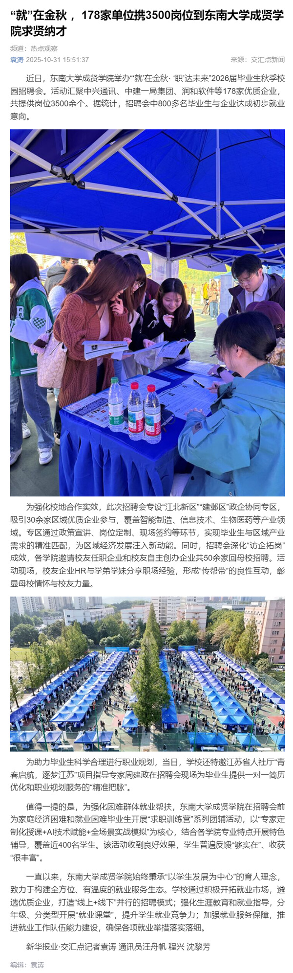 【交汇点新闻】“就”在金秋,178家单位携3500岗位到今年会官网求贤纳才