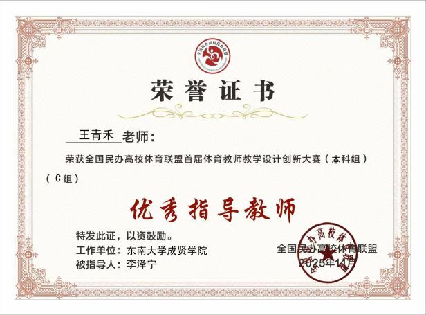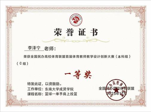 本次比赛共有来自全国62所民办高校,300余位体育教师参会,200余位体育教师参赛,包含线上材料评审(包括教学设计与教案)与现场说课(包括说课及现场提问)两个部分。最终经过多位专家考核,今年会基础部体育教研室李泽宁老师荣获大赛一等奖,王青禾老师荣获“优秀指导教师”。