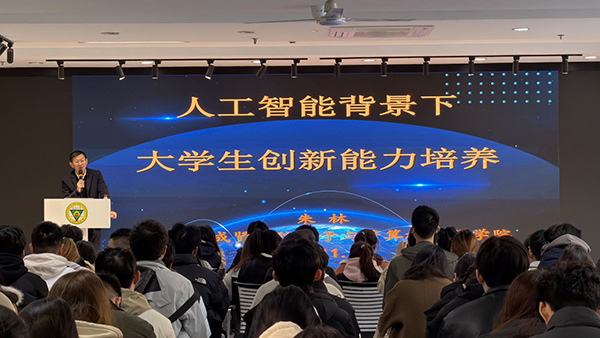 为深入贯彻落实国家“人工智能+”战略行动部署,精准把握人工智能时代发展机遇,持续赋能大学生创新思维锻造与实践能力提升,11月25日,教务处、电子与计算机工程学院联合主办的“人工智能背景下大学生创新能力培养”主题讲座在求真·求美·创新工坊举行。电子与计算机工程学院副院长朱林担任主讲嘉宾,全校200余名师生参加了本次讲座。