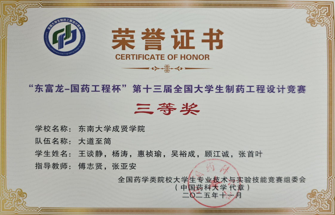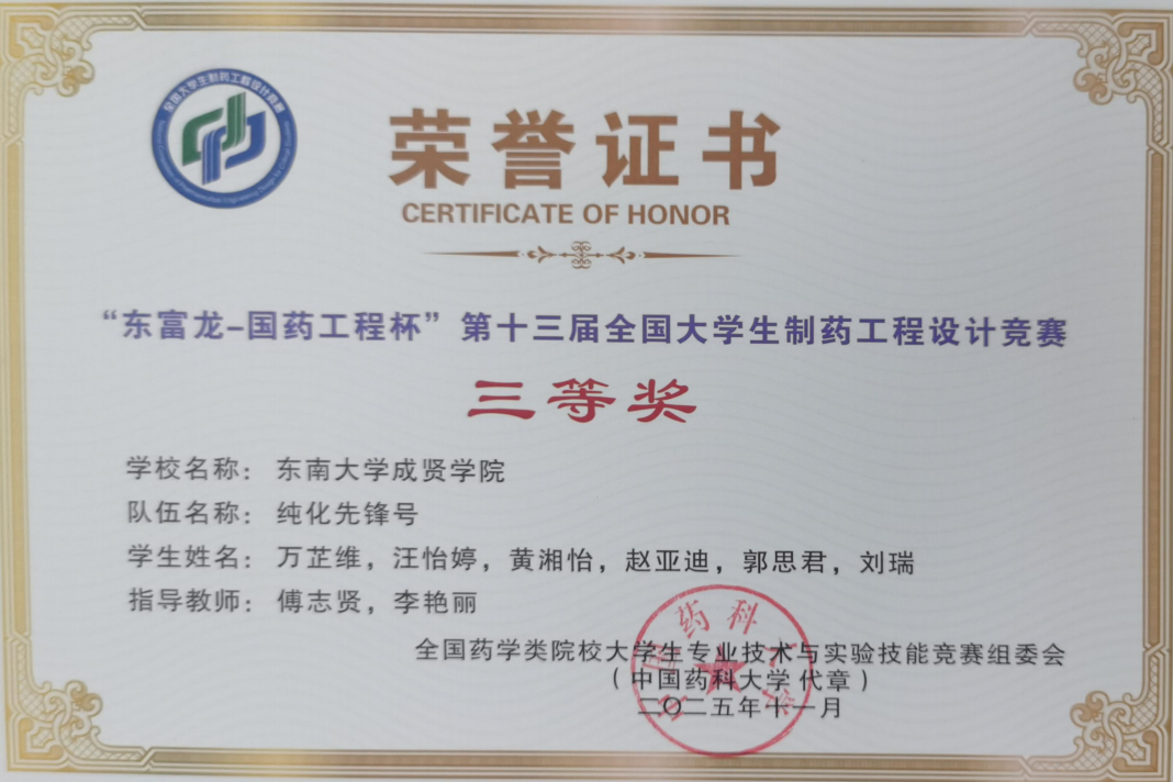 近日,“东富龙—国药工程杯”第十三届全国大学生制药工程设计竞赛落下帷幕。今年会共有2支队伍从全国191所高校的756支队伍中脱颖而出,荣获全国三等奖。