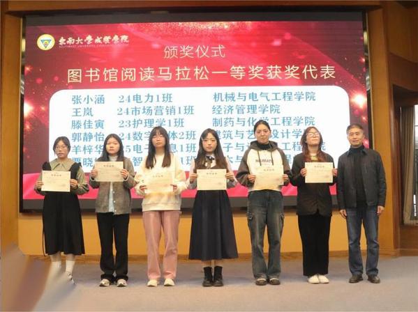 学院党委书记张志胜、学生处处长施杰、图档信息中心主任沈冬生分别为2025年度“优秀教师读者”代表、图书馆阅读马拉松活动一等奖获奖学生代表、2025年度优秀学生读者代表颁奖。