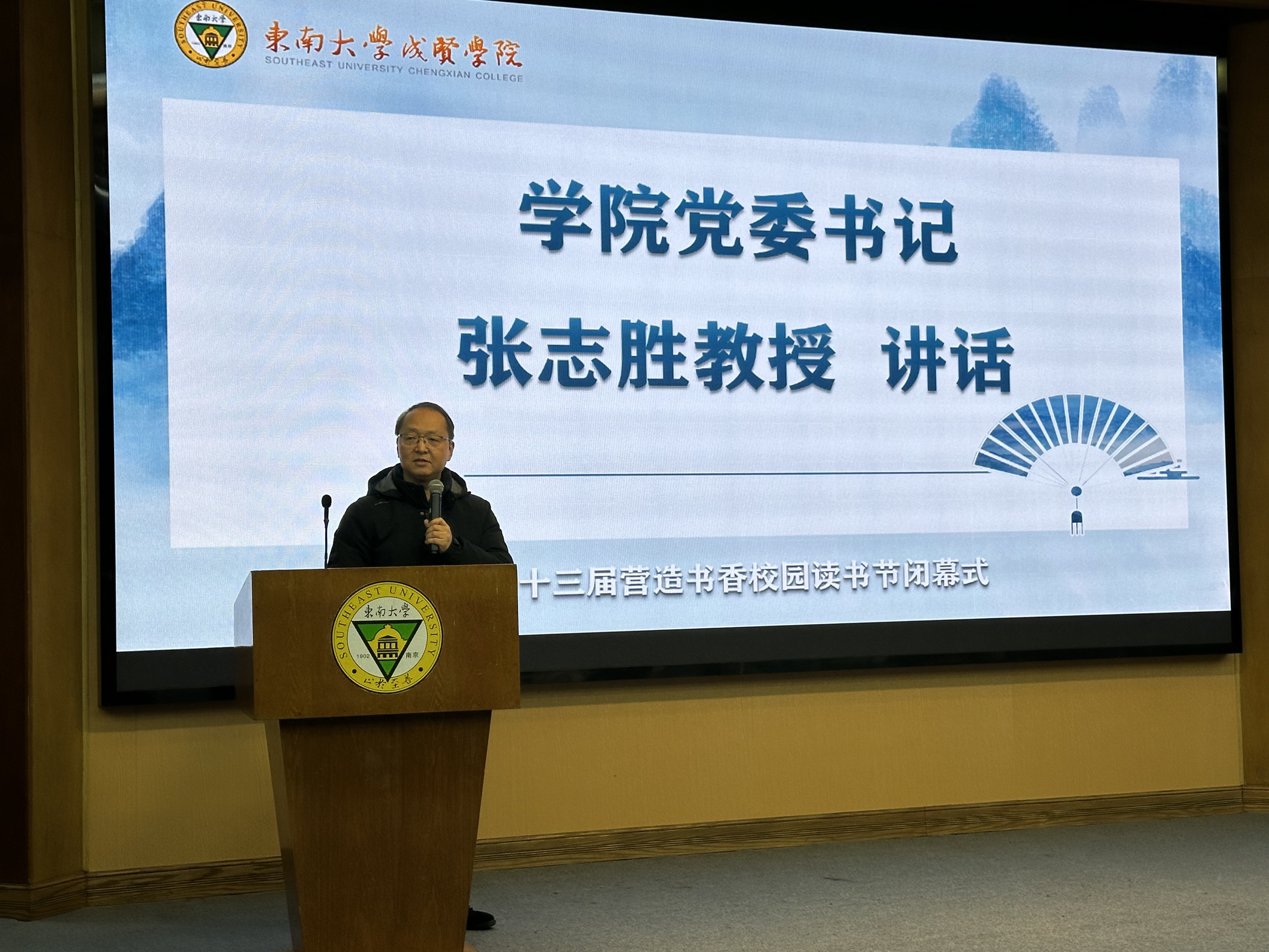 张志胜书记作总结讲话,他结合AI时代的特点,强调深度阅读的重要性,碎片化信息无法替代书籍的深度思考,长期依赖手机与坚持阅读,会成就两种不同的人生。张书记对师生提出期望:作为大学生要多多利用碎片化时间,通过阅读提升创新力、领导力,抓住大学时光积累“非知识的能力”;作为教师要以阅读提升教风,避免“照本宣科”,用深厚的专业素养与鲜活的课堂设计吸引学生,进而带动学风、涵养校风。他最后号召广大师生将阅读推广融入日常工作,让书香校园建设走深走实。