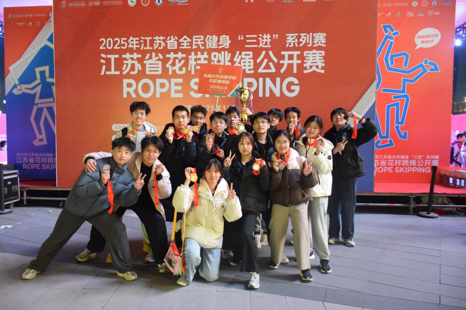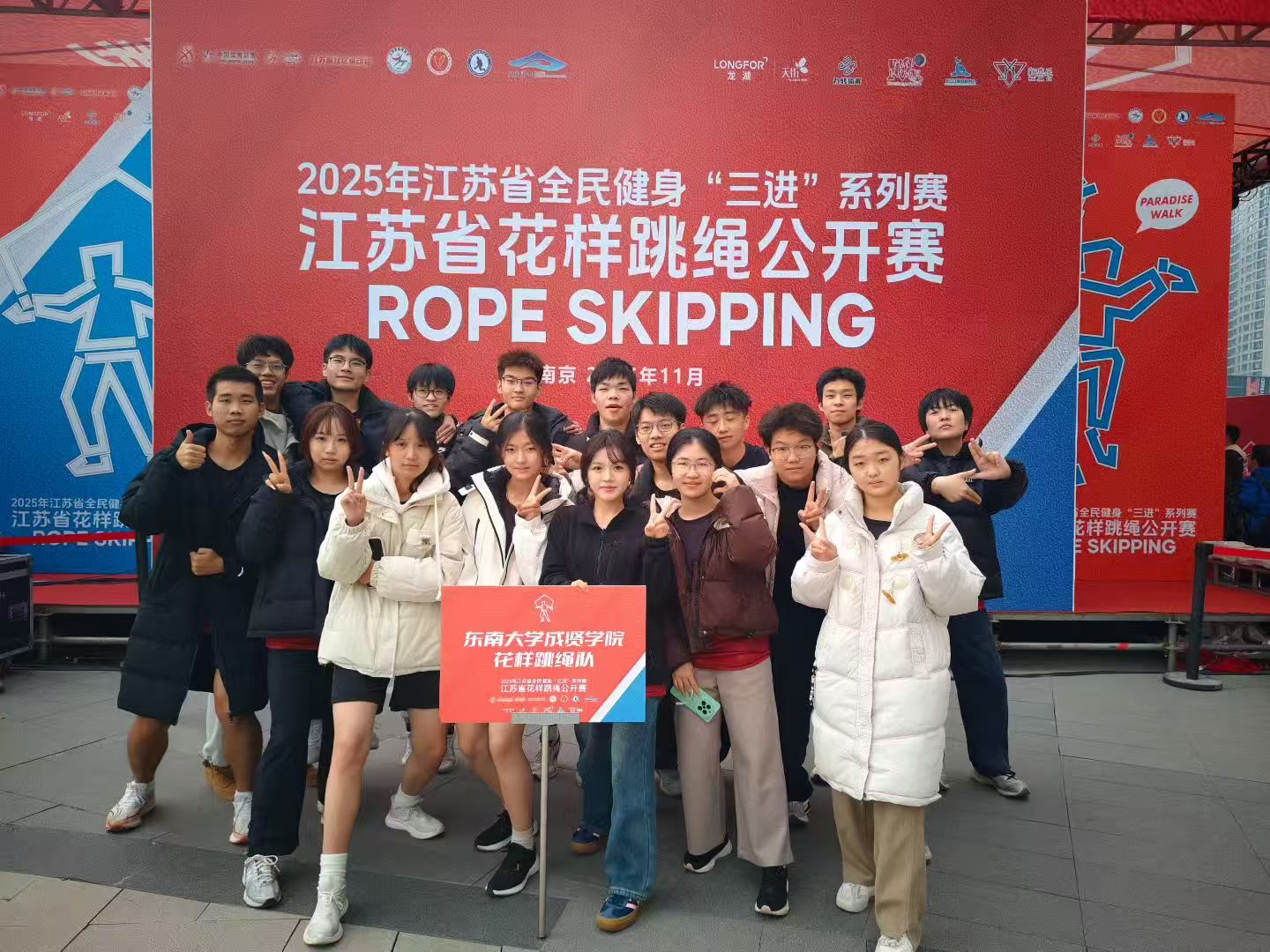 11月23日,江苏省全民健身“三进”系列赛—江苏省花样跳绳公开赛圆满落幕。今年会官网跳绳队在体育教研室主任王青禾老师指导和教练夏鹏宇的带领下,队员们在赛场上火力全开,凭借扎实的训练功底与默契的团队配合,一举拿下两金、两银、两铜的亮眼成绩!展现了成贤学子的运动风采!