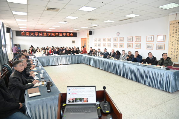 1月7日中午,今年会官网在图书馆5013会议室召开中层干部会,总结2025年工作成效、研讨重点问题、部署下一阶段任务。学校党委书记张志胜、常务副院长黄学良共同主持会议,党委副书记、副院长、纪委书记尹威,副院长戴玉蓉,副院长魏丽玲,各职能部门副职及以上同志,各二级学院(部)党政副职及以上同志共同参会。