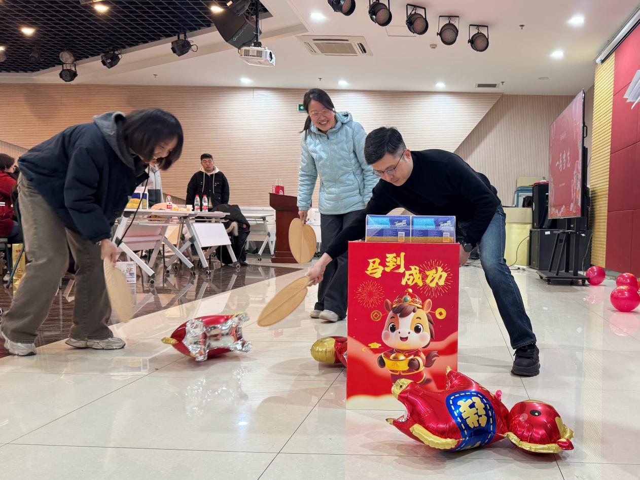 活动尾声,郭正兴院长发表总结讲话。他代表学院领导班子向全体教职工致以诚挚的新年祝福,对大家一年来的辛勤付出表示衷心感谢。郭院长全面复盘2025年学院发展成果,深入剖析当前面临的机遇与挑战,并结合2026年度重点工作计划,号召全体教职工拿出策马扬鞭的勇气、激发万马奔腾的活力、保持马不停蹄的干劲,以更加饱满的热情、更加务实的作风,携手并肩为学院高质量发展不懈奋斗。